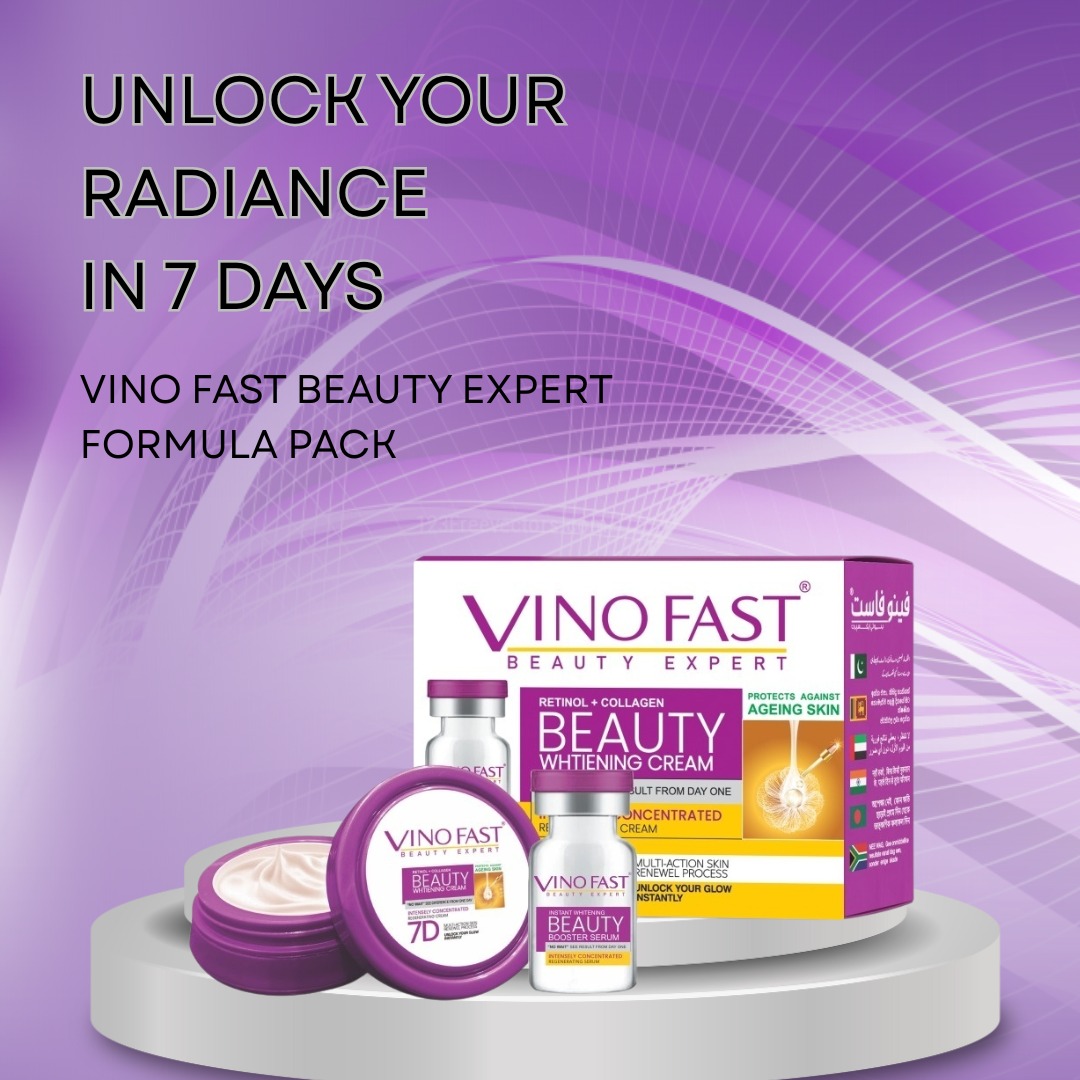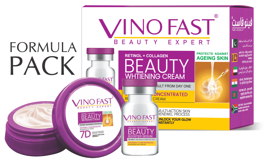 Vino Fast Beauty Whitening Cream 7D is an advanced skin renewal formula enriched with Retinol and Collagen that helps lighten, brighten, and rejuvenate your skin. Experience visible results from day one with smoother, glowing, and youthful-looking skin.